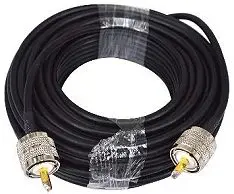 RG58 coax cable used for HAM radio reception. Get the shortest length you need. Cable has PL239 male plugs that fit into SO239 female sockets. Cable connecting the antenna to the radio adapter below. More info >